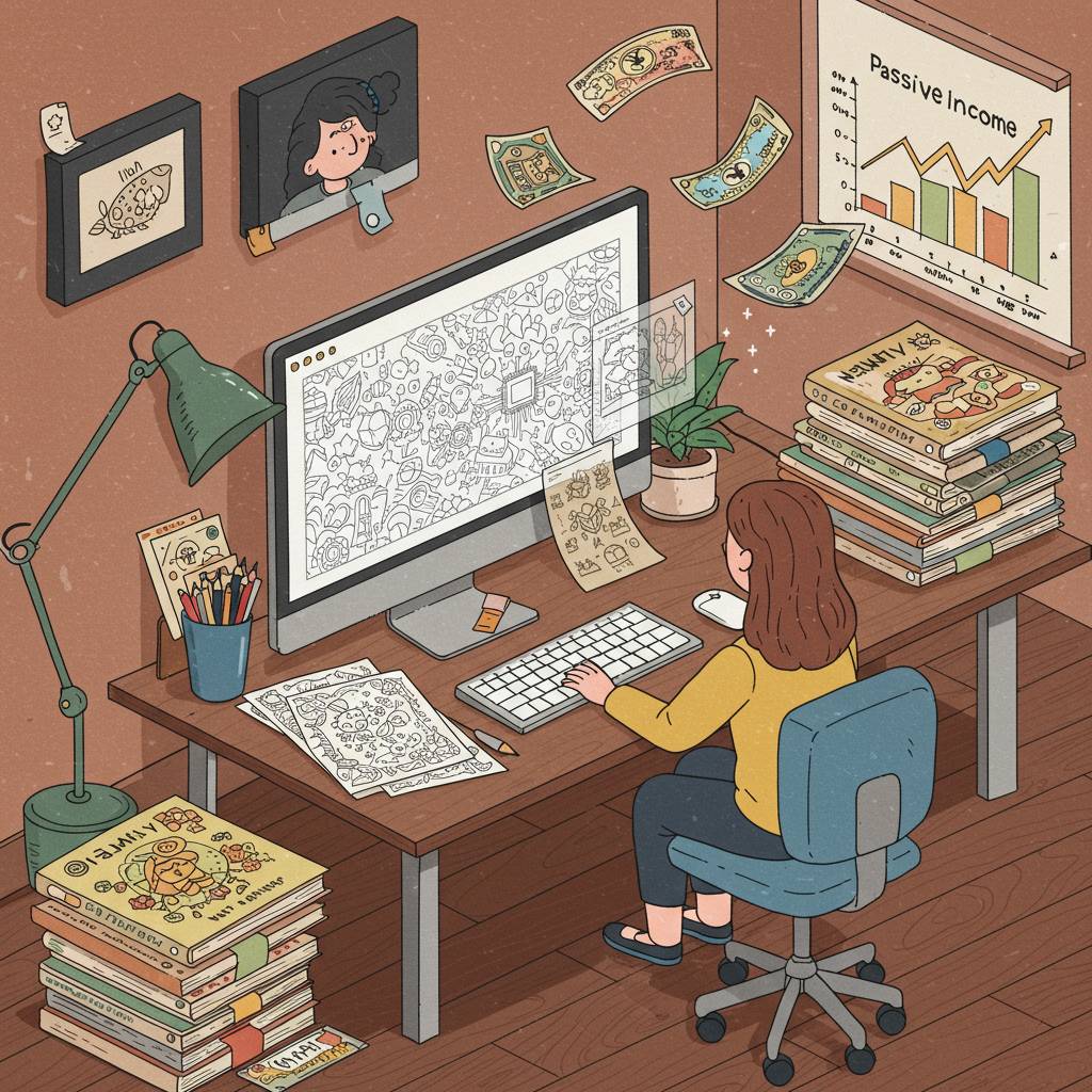 この副業の大きな利点は、最初に時間をかけて作成すれば、あとは自動的に収入が発生する「セミオートメーション」型のビジネスである点です。今では新しい塗り絵集の作成に週に3〜4時間ほど費やすだけで、安定した副収入を得られています。